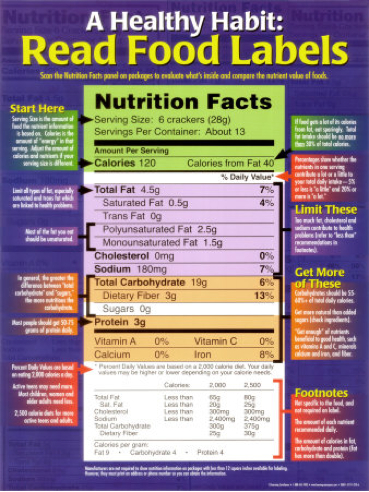 One of the many things the nurse practitioner gave me was a magazine called Power of Prevention. It has a great article written in it called “How Much Should I Be Eating?” by Dr. Elise Brett. The topic of the article is Counting Calories for Weight Management. I’m going to sum up the article for you then tell you how to read and understand food labels. Let me be the first to say counting calories is NOT easy. With soooooo many people using smart phones you can download diet and exercise apps for FREE to your phone!!! It’s way better than writing your food and exercise down. The KEY sentence in the first paragraph of the article is, “If you truly want to lose weight, it boils down to calories in vs. calories out, not matter where the calories come from.” Basically she is saying it doesn’t take a diet to lose weight you just need to manage what you eat. Next paragraph she defined what a calorie is. “A calorie is a unit of energy.” Throughout the rest of the article she explained what your calorie intake should be to maintain or lose weight. She also broke this down by gender. As I stated last week men and women lose weight different due to our bodies. According to Dr. Brett most adult women need 1600-1800 calories per day to maintain their current weight; men need 2000-2200 calories. She also talked about the REE or resting energy expenditure. The REE is the amount of calories you burn per day if you did nothing. You can also use Self Nutrition Data or Health Status which are free websites to get your BMI calculations and other information. BUT, first you need to determine what YOU want your goal weight to be AND it needs to be a healthy weight recommended by your primary physician. According to the BMI my weight should be between 121-155. I am NOT trying to get as small as 121; I would look like a crackhead. My current calorie goal is 1500 per day but I average between 1200-1400. I know you are like WHOA NELLY you starving. Actually I’m not and since my body is well adjusted to my current eating lifestyle I cannot eat like I use too. BUT, back to the article. Most diets don’t work because people get bored with eating the same foods all day everyday. According to Dr. Brett if your goal is to LOSE weight you need to be eating 1000-1200 calories per day for women and 1500-1800 per day for men. WELL, if I go under 1200 calories MyFitnessPal will say it’s too low when I close my food an exercise diary for the day. Dr. Brett ended the article by saying, “The bottom line is: if you want to lose weight, eat fewer calories.”