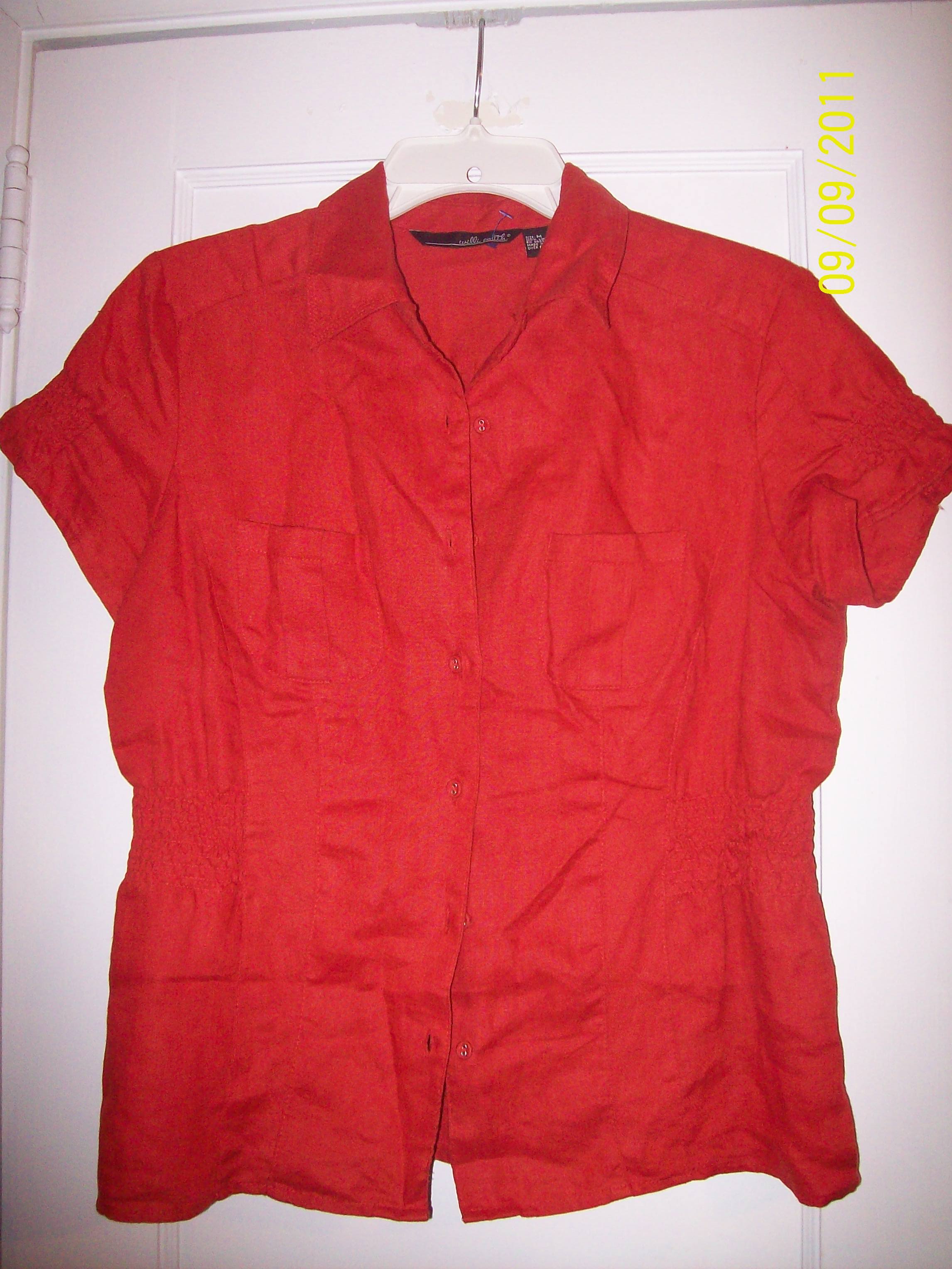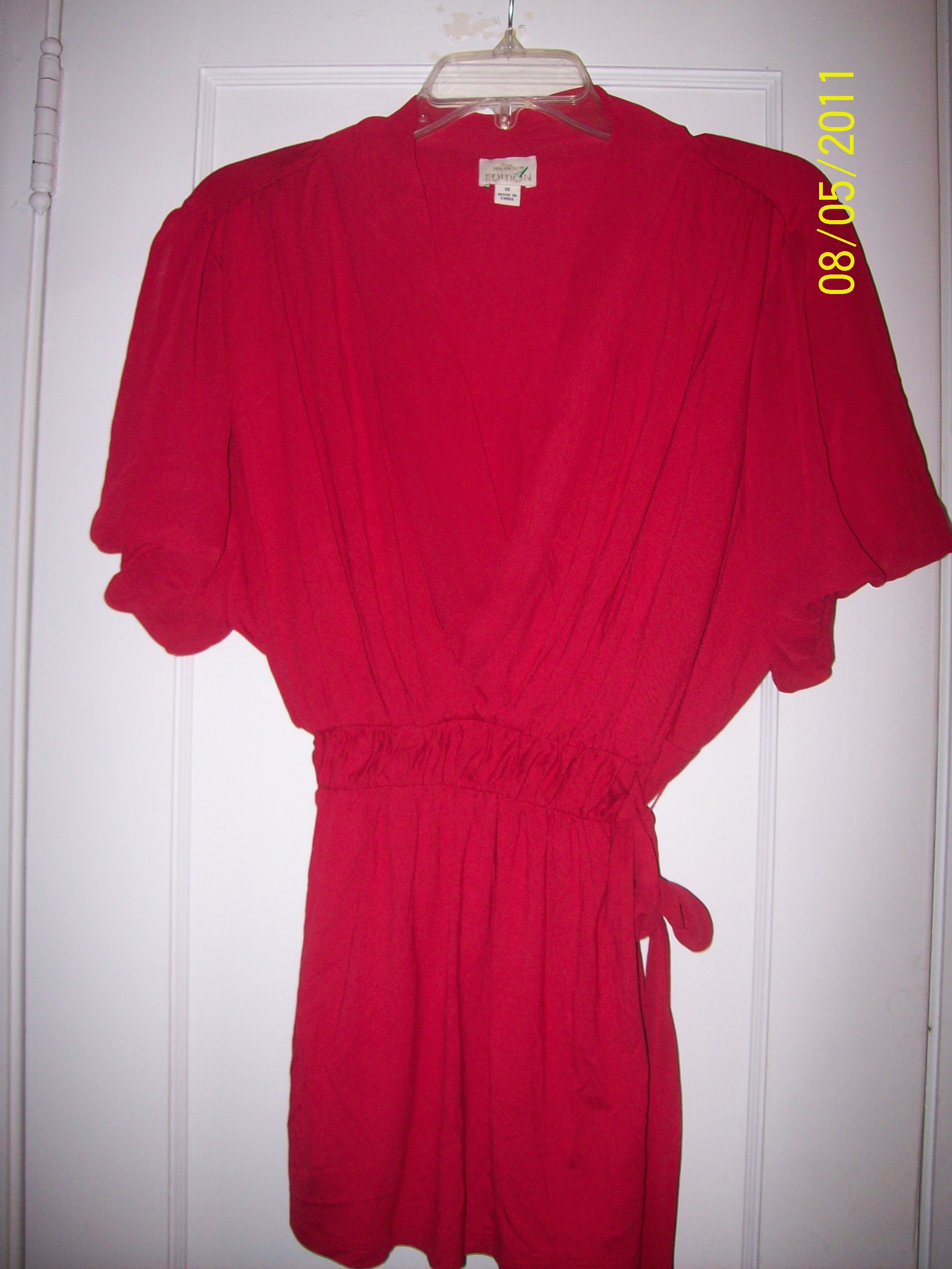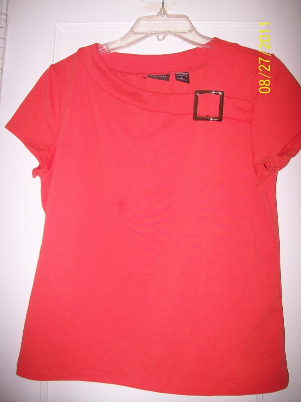 After finding these wonderful dresses I made my way to the skirts, pants, and jeans racks. I didn’t see anything that caught me eye so I checked out the shoes then the shirts. I did see a couple of pair of shoes I liked but these size 10s I have was not going to squeeze in them; LOL. My eye instantly caught this adorable red shirt.