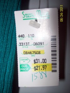 Since winter is around the corner I will be wearing this great find with some nice slacks. AND you will NEVER guess what I scored this for? It had the color tag of the day so I scored this find for $1.50; YEP you read that right $1.50 for a DKNY blazer.